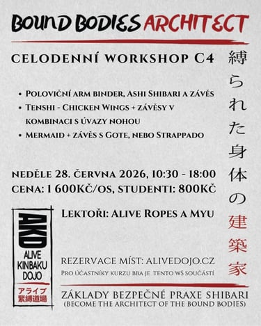 Celý kurz však osloví především ty s opravdu vážným zájmem o studium Shibari/Kinbaku.