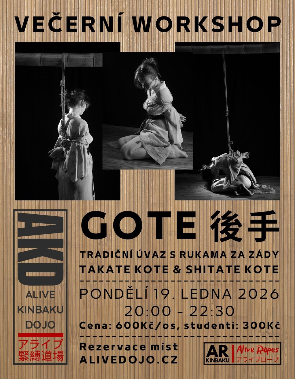 Workshop je vhodný jak pro začátečníky, kteří již uměj vázat alespoň základní uzly, tak pro všechny, kdo Gote již někdy vázali, ale rádi by si ho pod dohledem procvičili a zopakovali postup i detaily.