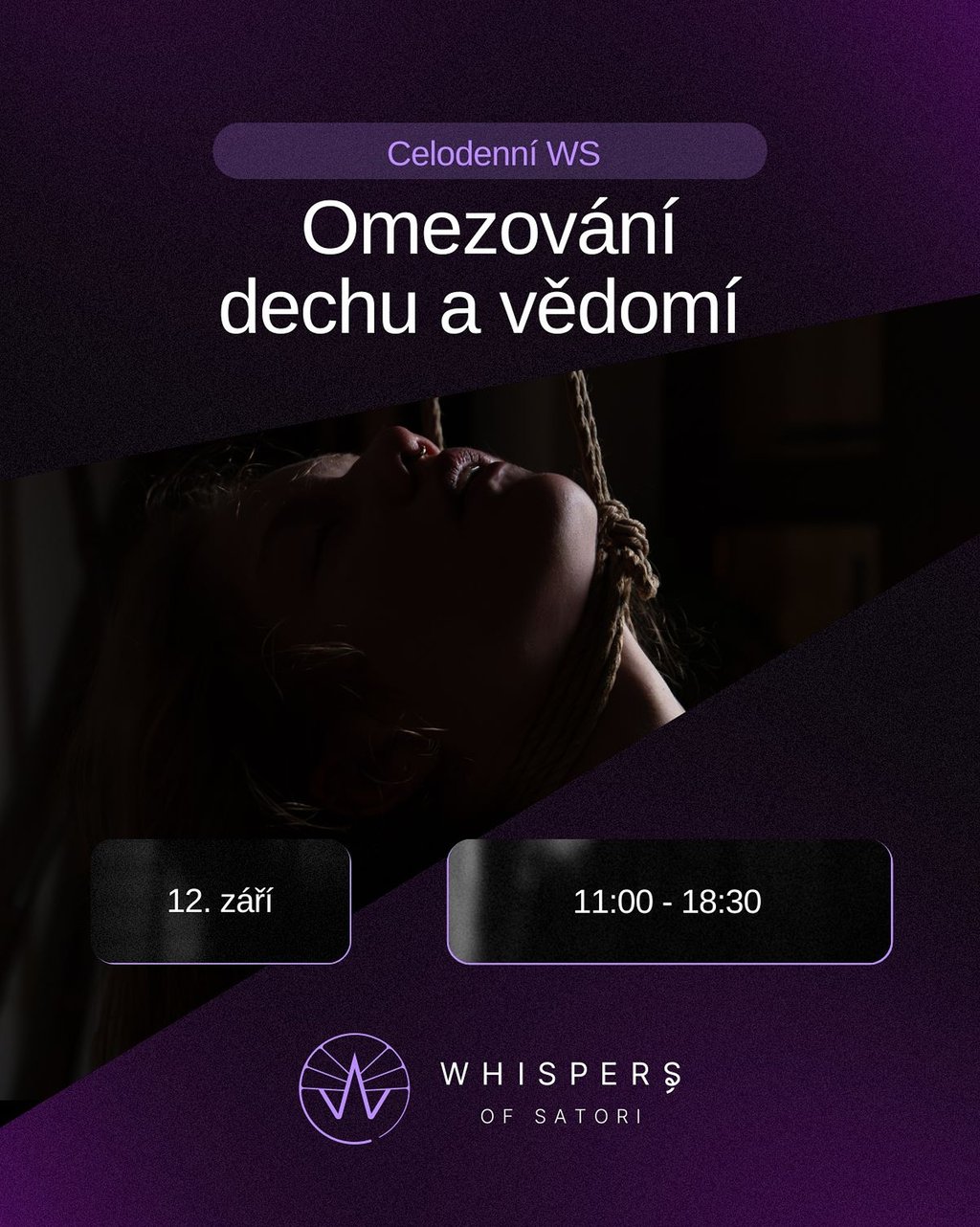Tento workshop se zaměří na relativně bezpečné techniky omezování dechu a vědomí, ať už rukama nebo provazem. Ponoříme se do celého spektra pocitů: od strachu, přes stud, až po křehkost a odevzdání. Budeme si hrát s dominancí, power play dynamikou a tím, jak tyto prvky přirozeně začlenit do vašich scének.