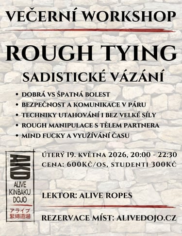 Na ws si vysvětlíme a prakticky ukážeme rozdíly mezi tvz. špatnou a dobrou bolestí a jak rozdílně to potom vnímají naše provazové protějšky v session.