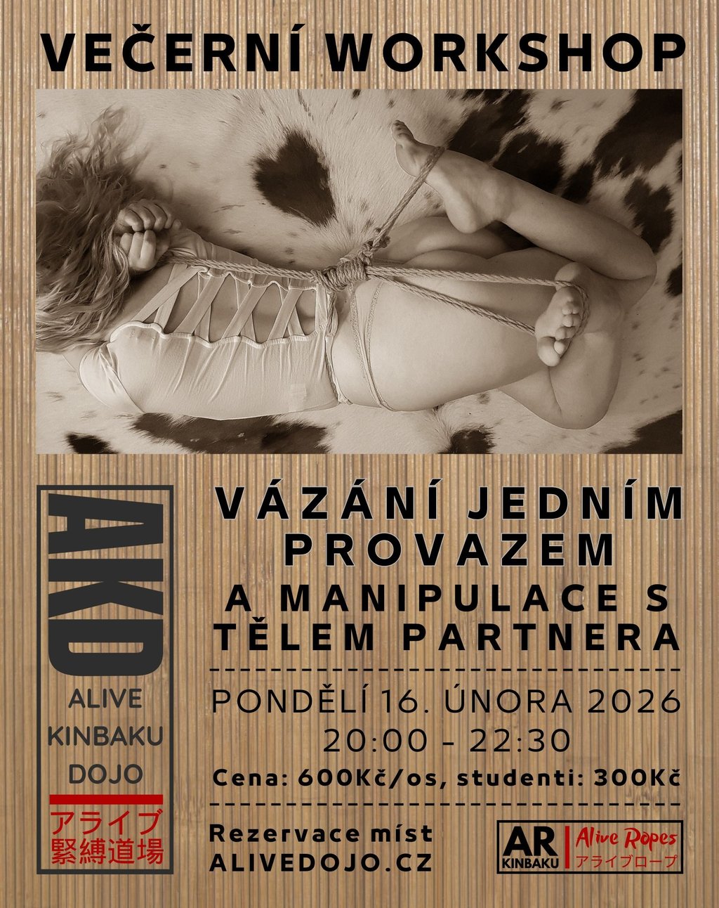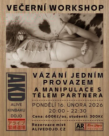 S tělem partnera/partnerky budeme krom provazu, manipulovat nejdříve svýma rukama a případně i nohama nebo celým tělem. Ukážeme a vyzkoušíme si základní možnosti, které pak můžete sami dále rozvíjet dle své fantazie a chuti.