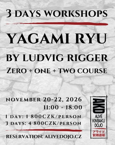 Key Focus: Understanding balance and suspension sequencing. Repeating Kanuki Shibari and Hip Harness in every lesson. Refining Yagami Taijutsu Sankaku Tettori techniques.