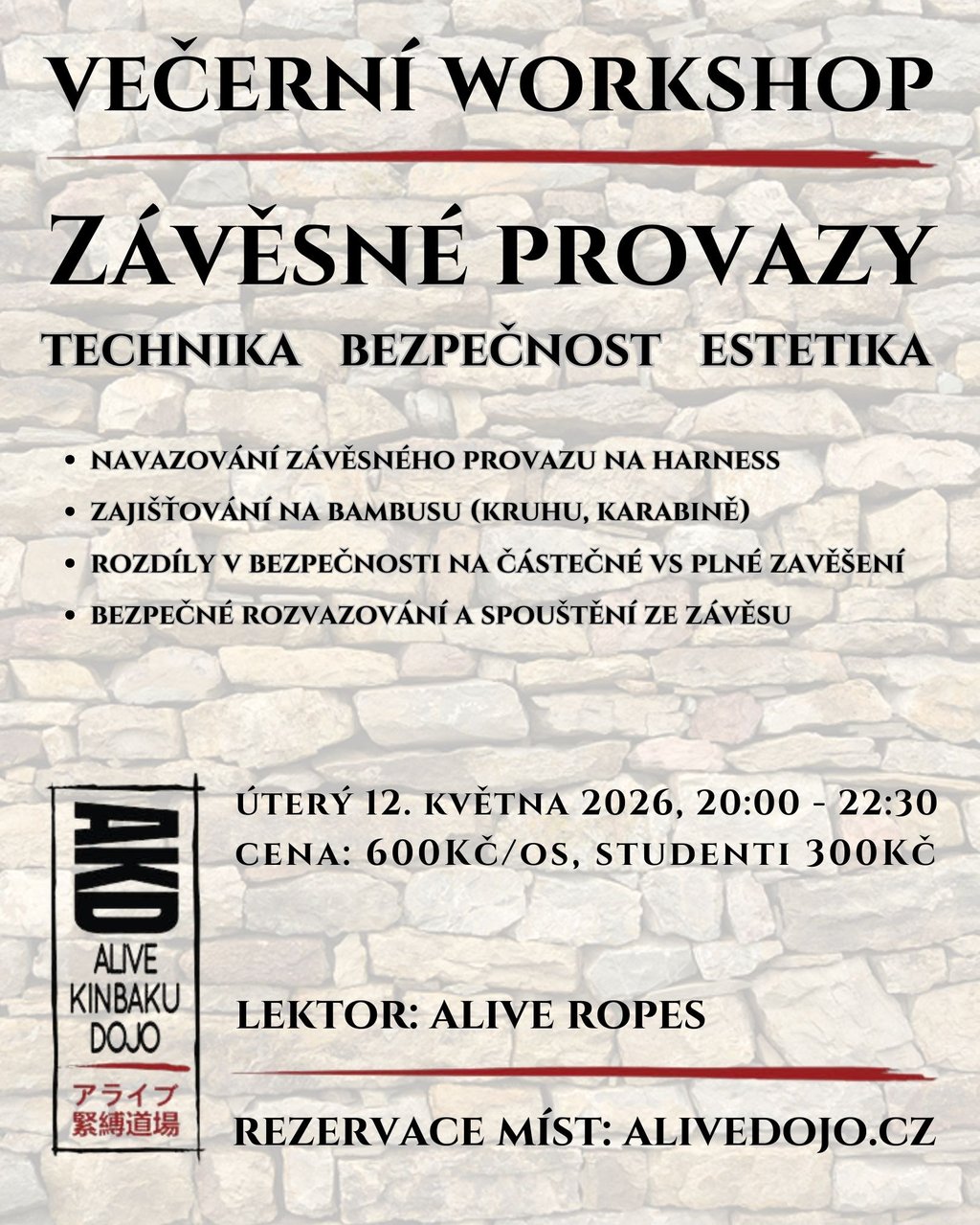 Úterý 12. května 2026, 20:00 - 22:30, 600Kč/os, studenti 300Kč